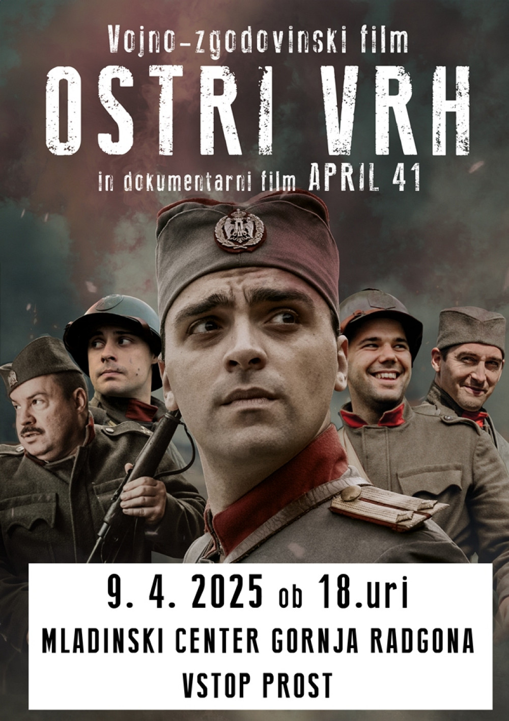 Ob obletnici napada vabimo v sredo, 9. aprila 2025, ob 18. uri v Mladinski center Gornja Radgona na projekcijo vojno-zgodovinskega filma Ostri vrh in dokumentarnega filma April ’41. Vstop prost!