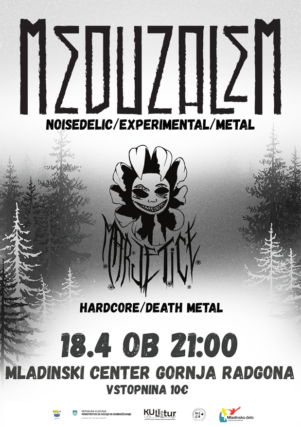 An energetic concert evening with two distinctive local bands is expected at the Gornja Radgona Youth Center on Saturday, April 18, 2026. MEDUZALEM, with their recognizable sound, combines mathematical riffs, experimentation and social criticism that appeals to both the mind and the body. From their debut album The Art of Suspended Judgement (2015) to more recent releases such as La Terza Gamba (2022) and the live album The Six Dimensional Man: Live Butt-Leg (2025), they are constantly expanding the boundaries of their expression. They are joined on stage by MARJETICE, an explosive death thrash band from Prekmurje, which brings influences of prog, black and alternative metal into their music and is famous for its intense performances. Doors open at 8:00 PM, the concert starts at 9:00 PM. Admission is €10. Don't miss an evening of raw energy and bold sound!