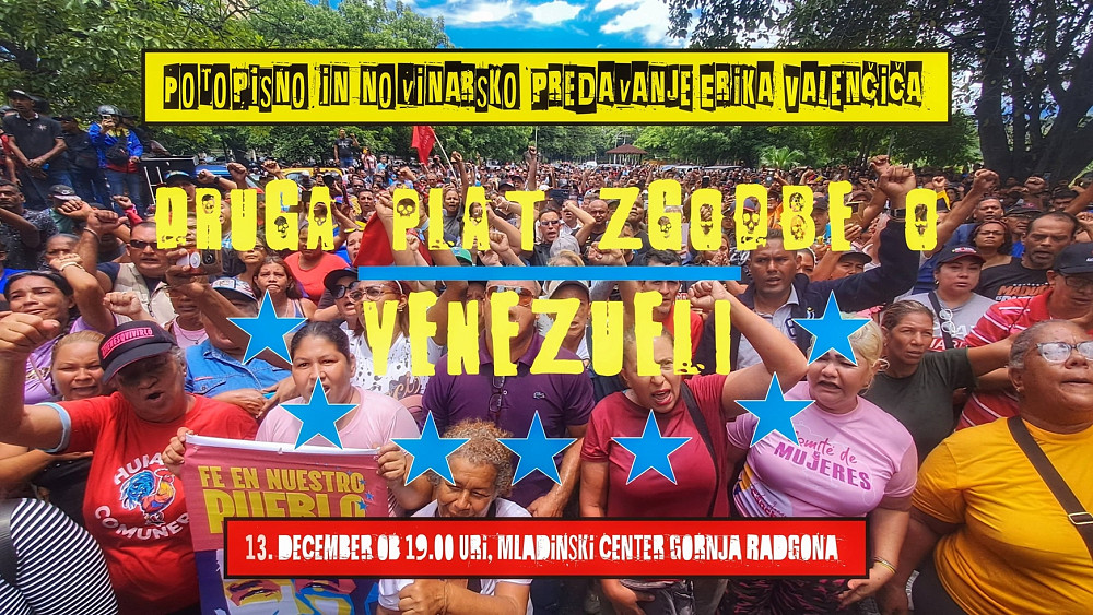 KUD ZRAK Gornja Radgona and the Gornja Radgona Youth Center invite you to a lecture by Erik Valenčič on Venezuelan communes, cooperatives and collectives, in which millions of people work. Valenčič has visited Venezuela three times, most recently in January this year, and has researched autonomous communities – from rural socialist communes to armed revolutionary groups that have taken control of security and organized popular power in the favelas of Caracas. While foreign media emphasize departures due to sanctions, the story of the millions who are building one of the largest social experiments in South America and shaping a possible alternative to neoliberalism remains ignored. The lecture will be supported by photographs taken during his travels.