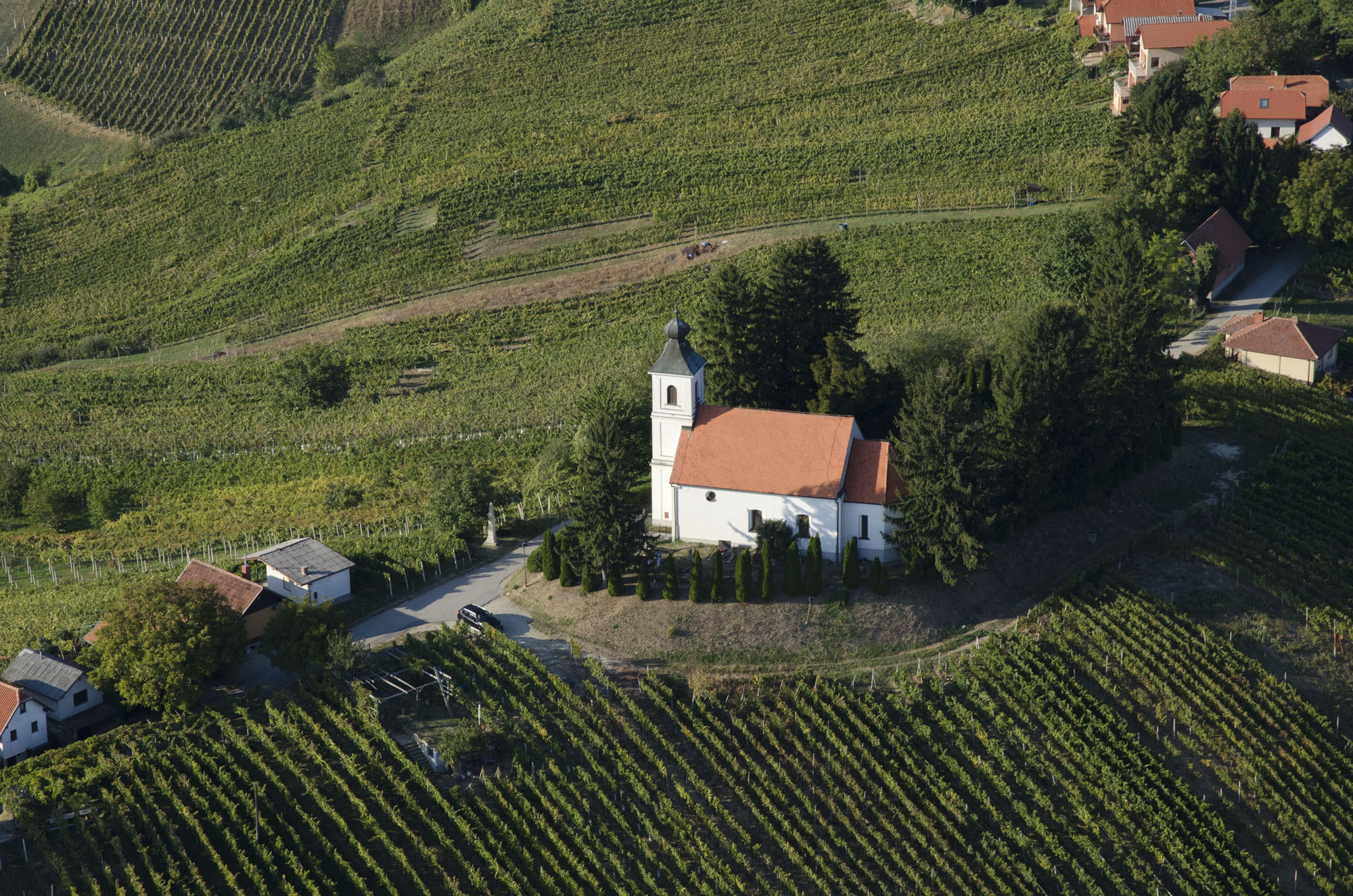 Die Kapelle der Heiligen Dreifaltigkeit erfüllt eine Schutzfunktion der Stadt und steht in der Mitte der Weinberge, wo sie als ein stolzer weißer Hüter auf die untenstehende Stadt herunterblickt.