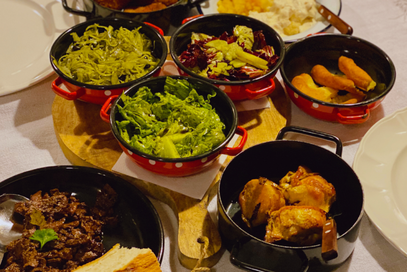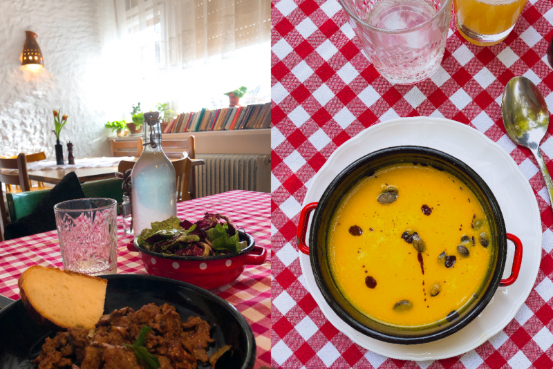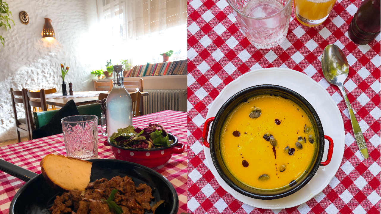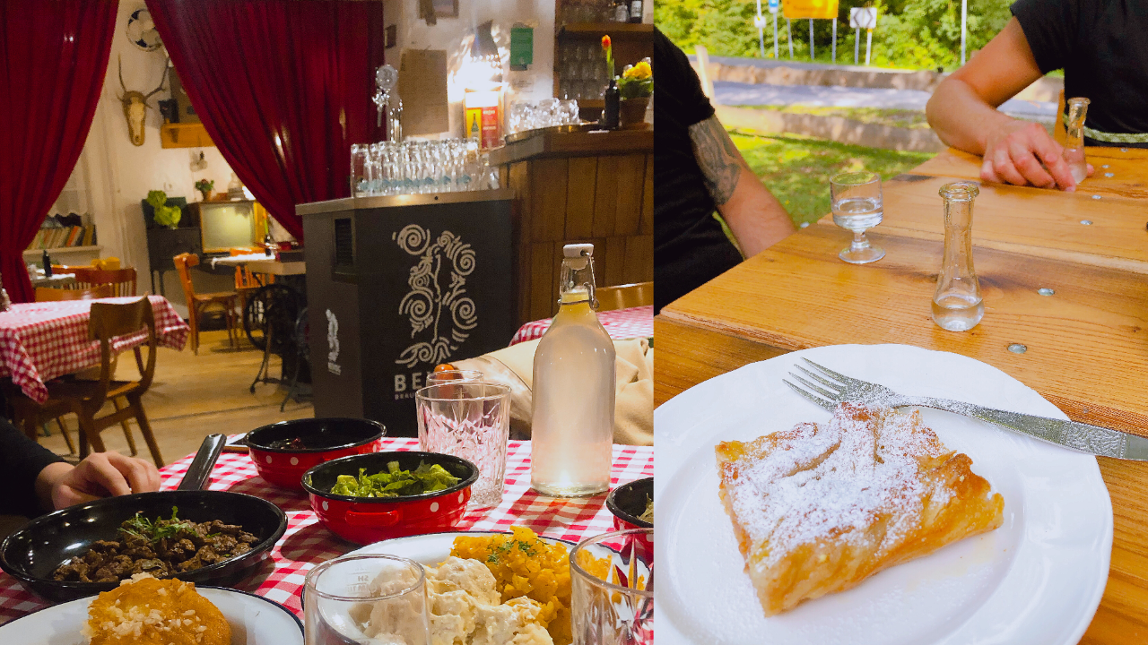 Im Essraum und auf der schattigen Terrasse können die Gäste ihren Durst sowie Hunger stillen, indem sie die aus der Umgebung stammende Gerichte unserer Mütter und Großmütter genießen, gemacht aus den Zutaten der umliegenden Bauernhöfe.