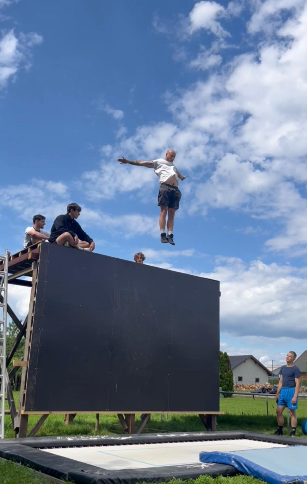 Aleš Ivanuša is engaged in the exciting  sport of Trampwall. It is a dynamic and fun discipline that combines a trampoline with a rebound wall, alowwing participants to perform various acrobatic moves, jumps, and aerial maneuvers. The activity is suitable for both children and adults and offers an engaging addition to events, sports days, workshops, or tourist activities. Trampwall lessons are also available, especially for children who are invited to learn new skills and enjoy movement.