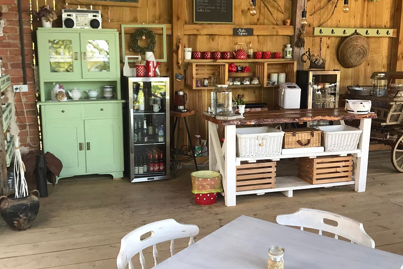 Prikupno urejen senik s kavo iz džezve in sladicami po babičinih receptih.